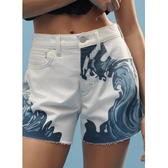 Anthropologie Pilcro The Devon Denim Shorts Wave Print Edition 32