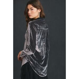 Anthropologie Pilcro The Hadley Relaxed Velvet Buttondown | Gray | SZ SP