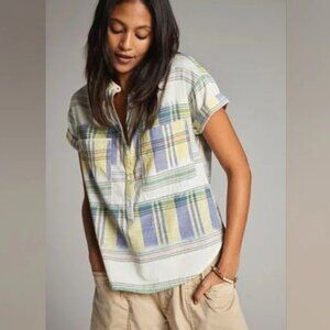Anthropologie Pilcro The Hannah Surf Blouse Multicolored Plaid 100% Cotton Shirt