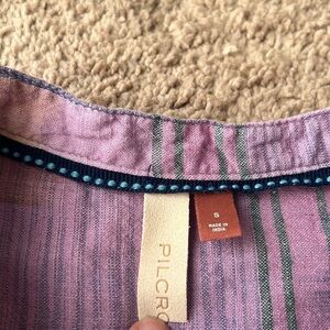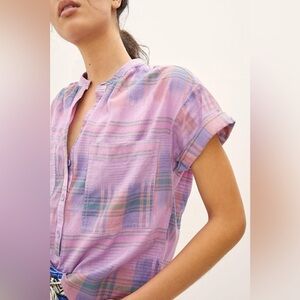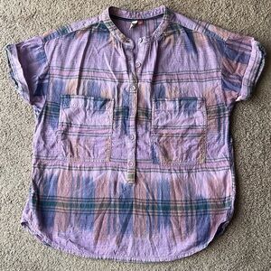Anthropologie Pilcro The Hannah Surf Short Sleeve Blouse Purple Motif Plaid