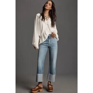 Anthropologie Pilcro The Scotty Cuffed High-Rise Straight-Leg Jeans - Sz 34 P