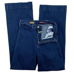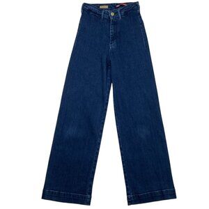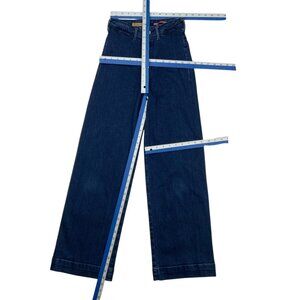 Anthropologie Pilcro The Skipper Long High Rise Jeans 24 Dark Blue Flare Zip Fly