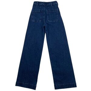 This Anthropologie Pilcro women's The Skipper Jean makes a statement due to it's straight fit, flare cuff, ultra high rise, zip fly with button, pockets, belt loops and dark blue washed denim.