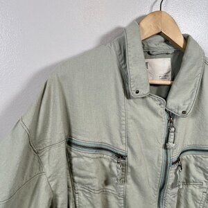 Anthropologie Pilcro Tidal Moto Utility Jacket Size XL Green Cropped Field