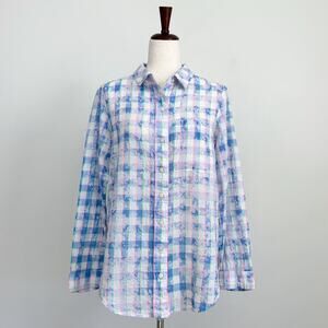 Anthropologie Pilcro Tie-Dye Blue Check Button-Up Shirt