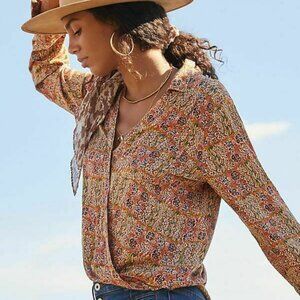 Anthropologie Pilcro Tisha Blouse Medium Surplice Wrap Style Long Sleeve