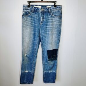 Anthropologie Pilcro Tonal High Rise Straight Crop Jeans Womens 26 Patch Boho
