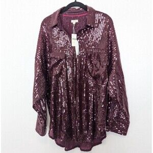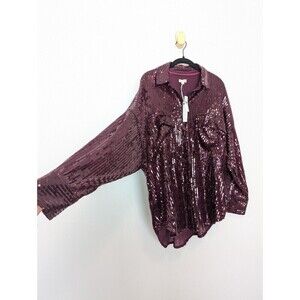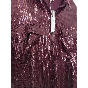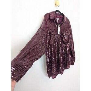 Anthropologie Pilcro Top Women Size M Burgandy Sequin Swiftie Button Oversize