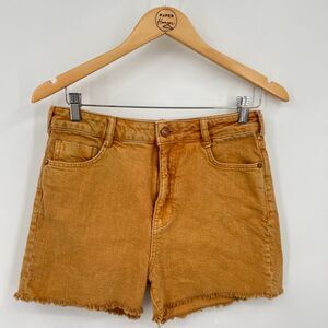 Anthropologie Pilcro Ultra High Rise Denim Shorts in Ochre, Sz 26, Boho Festival