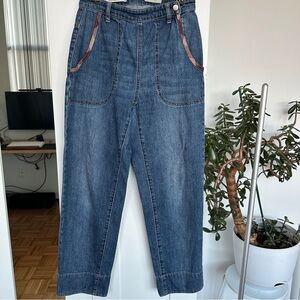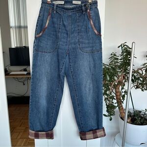 Anthropologie Pilcro Ultra High Rise Plaid-Trimmed Wear Cuffed Or UnCuffed