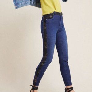 Anthropologie Pilcro Ultra High-Rise Floral Contrast Denim Jeans 25 NWT