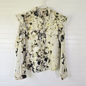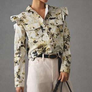 Anthropologie Pilcro Utility Blouse Button Down Top Ruffle Shoulder Medium