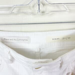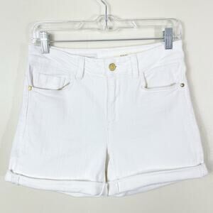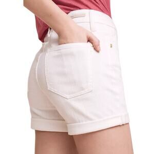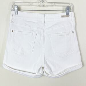 Anthropologie Pilcro White Denim Cuffed Hem Script High Rise Jean Shorts