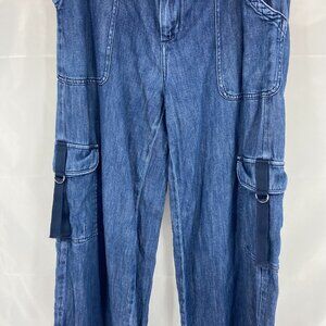 Anthropologie Pilcro Women 29 Cargo Jeans Wide Leg Medium Wash Denim Distressed