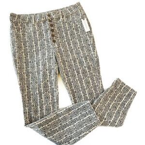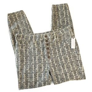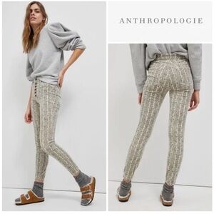 Anthropologie Pilcro Womens 32 Button Fly Printed Ivory High Rise Skinny Jeans