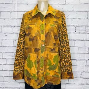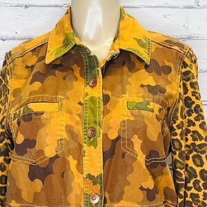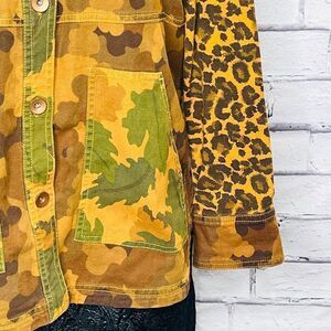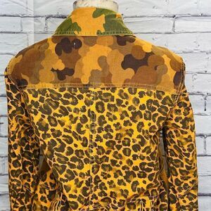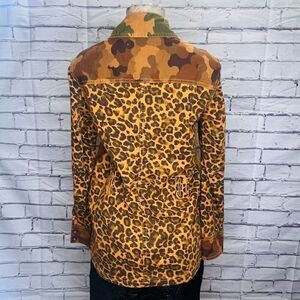 Anthropologie Pilcro Womens Brown Camo Cat Leopard Print Denim Jacket Size Small