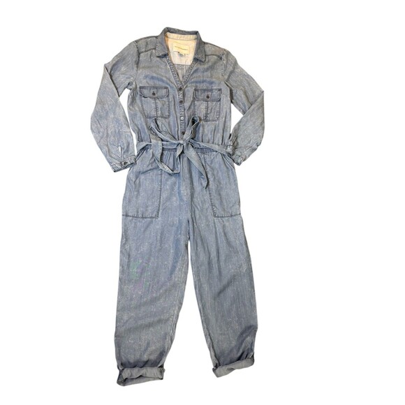 Anthropologie Pilcro Womens Small Jumpsuit Lyocell Chambray Denim Blue Roll Tab