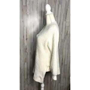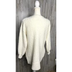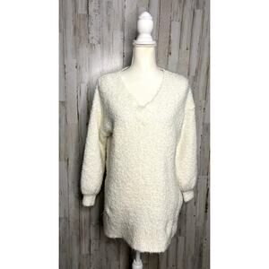 Keywords: Anthropologie sweater, XS tunic, ivory sweater, women's V-neck, long sleeve tunic, cozy knitwear, stylish casual wear, pre-owned sweater, soft fluffy knit, women's fashion, casual tunic, women's clothing, Anthropologie fashion, ivory knitwear, women's casual sweater