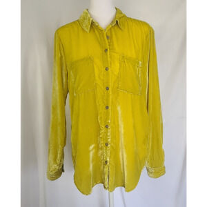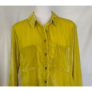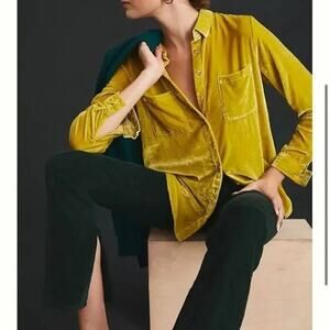 Anthropologie Pilcro Yellow Velvet Mara Button Up Pocket Shirt Top US 2