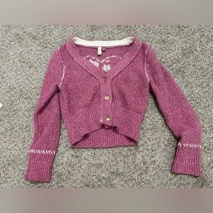 Anthropologie Pilcro Yin Yang Icon Heart Cardigan in Pink Size XS Spring Preppy