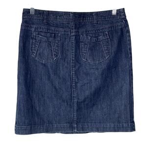 Perfect for casual outings or dressed-up occasions, this versatile denim skirt pairs effortlessly with tops, sweaters, and boots. Its tailored design and chic details make it a wardrobe essential. Pre-owned great condition. Measurements: waist 17", full length 20"