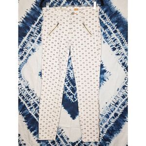 Anthropologie Pilcro and The Letterpress Skinny White Jeans 27. Excellent gently used condition. No signs of wear. Floral pattern. Front zip and button closure. Front zip pockets. The zip at ankle goes up to calf. Semi-cropped length. Please see the measurements in the photos to ensure they'll fit you before purchasing. Please let me know if you have any questions. :)