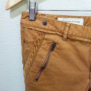 Anthropologie Pilcro and the Letterpress Brown/rust skinnies velvet patch detail.