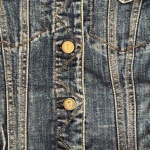 Anthropologie Pilcro and the Letterpress Cropped Blue Denim Trucker Jacket Small