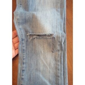 Note: The left leg, knee area of the jeans appear to have been repaired. Refer to last photo for reference