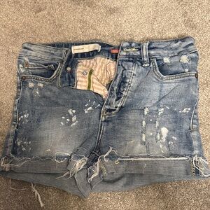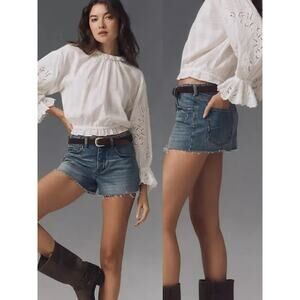 Classic blue Anthropologie Pilcro and the Letterpress Slim Boyfriend Jean Shorts. Perfect for a relaxed look. Excellent used condition, Waist is approximately 14” rise is approximately 8.75” and Inseam is approximately 5.75”