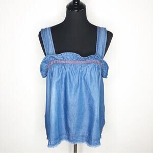 Anthropologie Pilcro blue denim chambray ruffle neckline sleeveless top XL