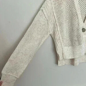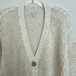 Anthropologie Pilcro crocheted ivory and pink cardigan