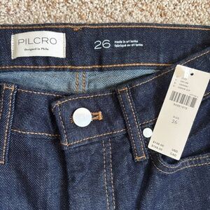 Anthropologie Pilcro high-rise wide cuff flocked jeans, size 26. New with tags, still in the plastic bag! From the website: Made from flocked denim, this Pilcro pair offers a high rise and an ankle-grazing straight leg, complete with an exaggerated cuff. 99% cotton, 1% elastane.