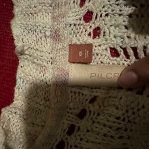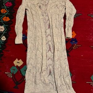 Lovely elegant and unique maxi cardigan by Anthropologie Pilcro, size xs! This piece features a delicate pointelle knit with subtle speckles of color in the cream and is an open cardigan, lovely to drape on a slightly cooler summer evening or on the beach. Cozy and versatile through seasons! Hardly worn; in excellent used condition.
