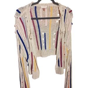 One size fits most fits like a oversized medium womens anthropologie pilcro open front colorful loose knit cardigan sweater funky unique artsy design
