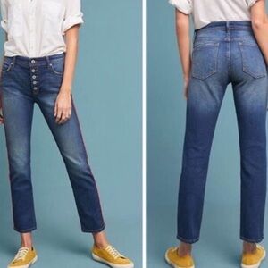 Anthropologie Pilcro & the Letterpress Relaxed Straight Jeans Red Stripe Sz 25