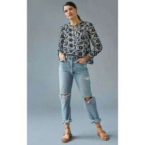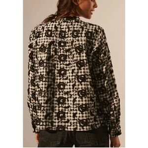 Anthropologie Pilcro The Whitney Trapeze Embroidered Buttondown Shirt Black XS