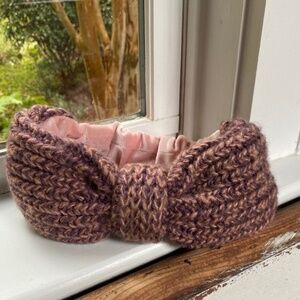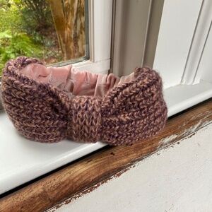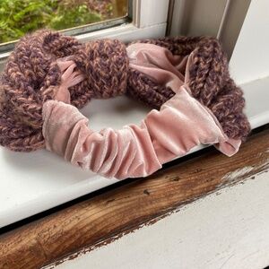 Anthropologie Pink Chunky Knit Velvet Headband