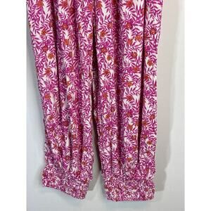 Anthropologie Pink Floral High Waisted Pull on Jogger Pants Size M