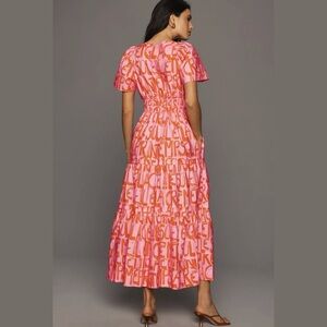 Anthropologie Pink Flutter Sleeve Maxi Dress