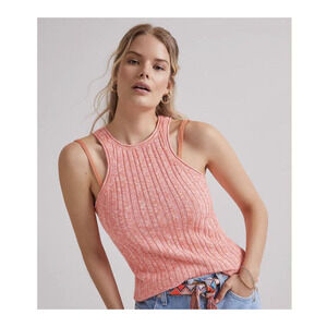 Anthropologie Pink Knit High-Neck Pullover Stretch Tank Top Size Small