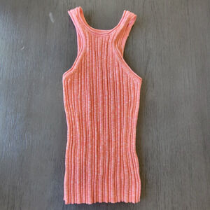 - Marled pink chunky rib-knit tank top