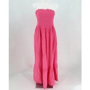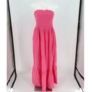 Anthropologie Pink Marisol Smocked Strapless Gauzy Maxi Dress Vacation Large