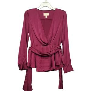 Description: Anthropologie Pink Moulinette Soeurs Brynn Wrap Blouse, size 4, great condition. Features 100% polyester, surplice front, perfect for elegant or casual wear. Smoke-free home, fast shipping, bundle to save!