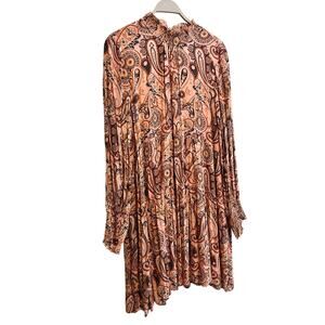 Chic midi dress with a paisley pattern. Features a high neckline and long sleeves. Perfect for any occasion.