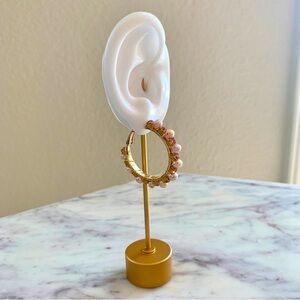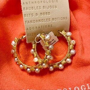 Anthropologie Pink Pearl Crystal Embellished Gold Hoop Margot Earrings