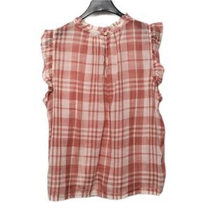 Anthropologie Pink Plaid Ruffle Sleeve Top