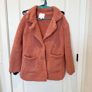 Anthropologie Rose Sherpa Button Up Jacket