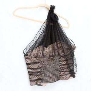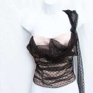 Anthropologie Pink Smocked Retro Bustier Corset One Shoulder Mesh Polka Dots L
