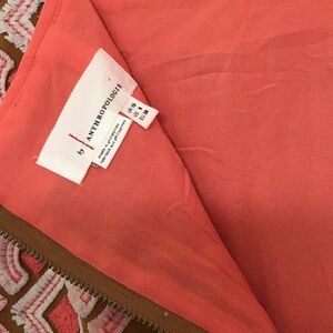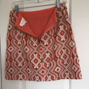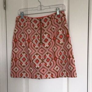 Anthropologie Pink Tan Embellished Linen Mini Skirt with Polyester Lining Zipper + Eye Hook